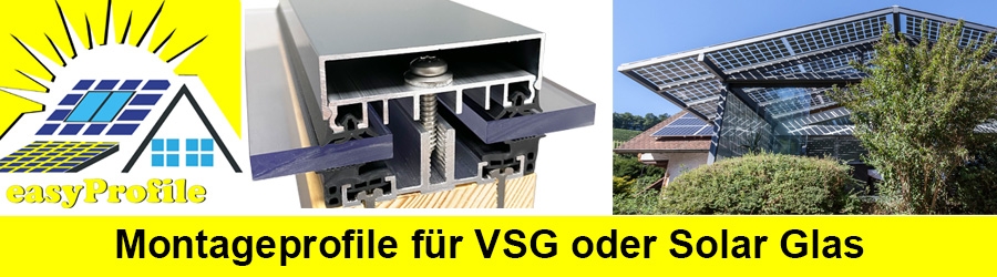 Montageprofile für VSG Glas, für Solarglas, Isolierglas oder Glas-Glas Solarmodule